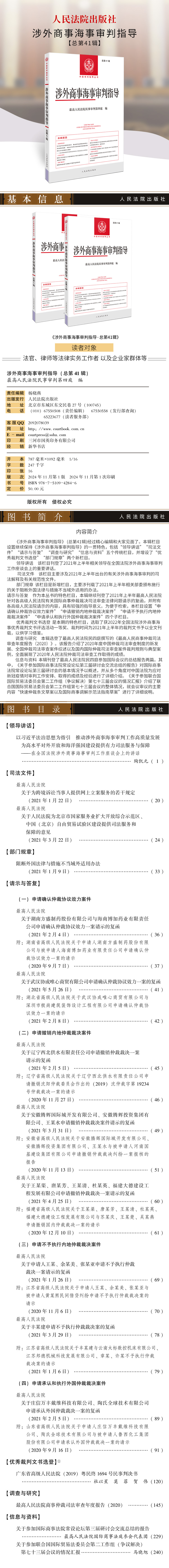 《涉外商事海事审判指导》 (总第41辑)经过精心编辑和大家见面了。本辑栏目设置继续保持《涉外商事海事审判指导》的一贯特色,包括“领导讲话”“司法文件”“请示与答复” “调查与研究”“信息与资料”五个传统栏目,并增设了“优秀裁判文书选登”“部门规章”两个新栏目。