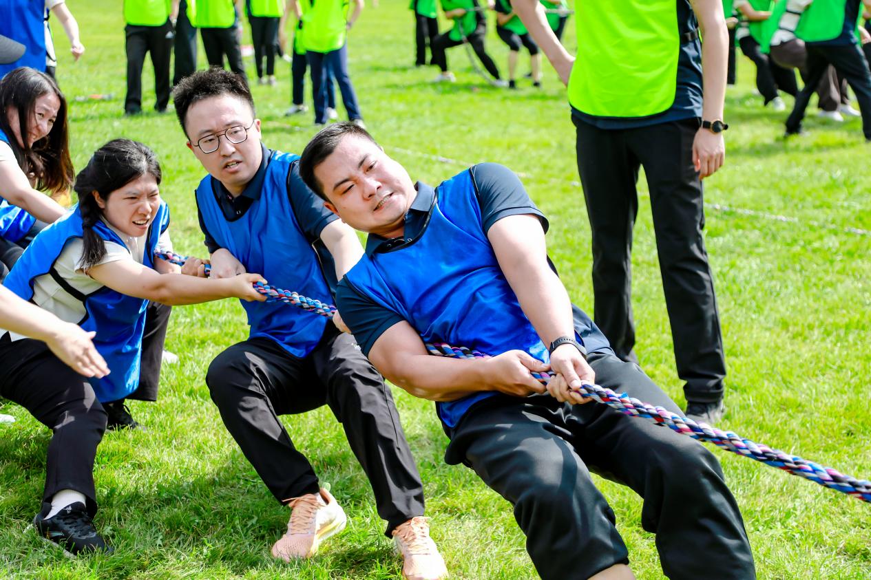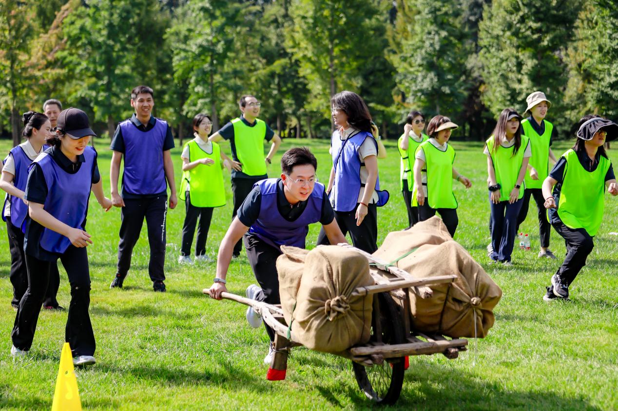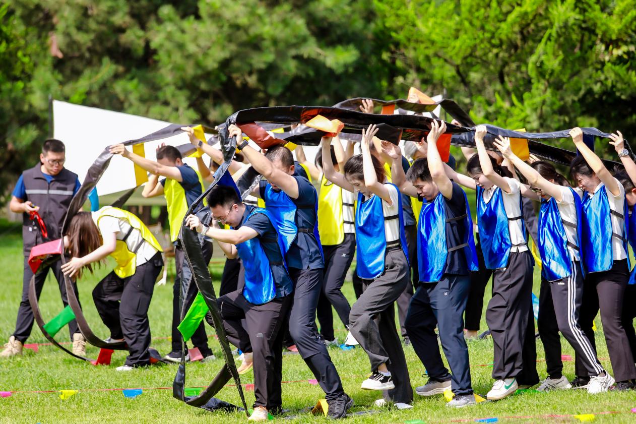 活动伊始的破冰分组环节便迅速点燃了现场气氛,全社员工被平均分为十队,各队在教练的指导下快速融合,共同构思响亮的队名与口号。激情的呐喊声展现了强烈的团队认同感。大家全身心投入,在挑战中突破自我,在协作中增进情谊。