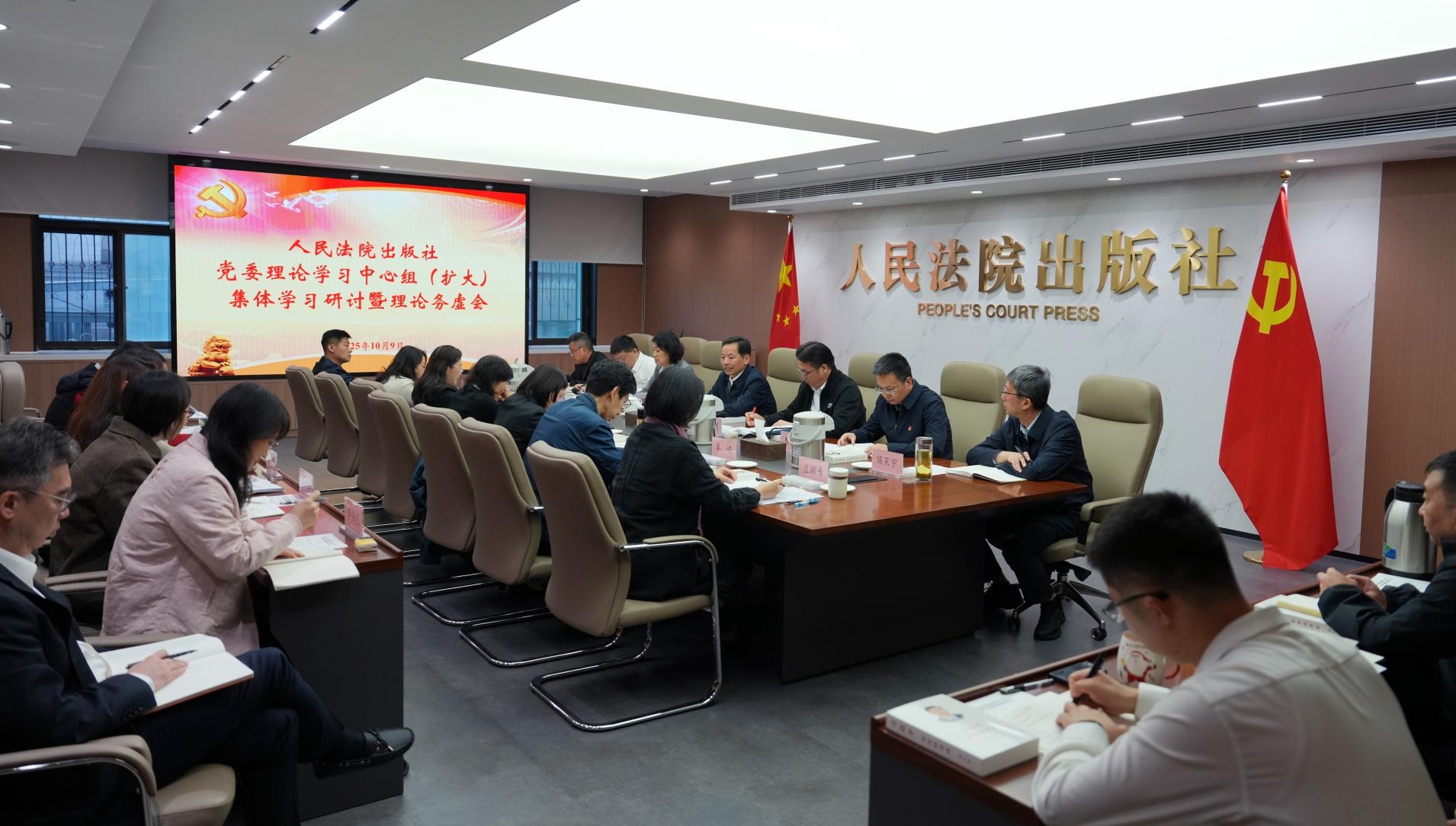 怎样理解用中长期规划指导经济社会发展是我们党治国理政的一种重要方式,坚持目标导向、需求导向、问题导向,总结经验、分析形势、查找差距,如何在编制“十五五”时期人民法院出版工作发展规划过程中更好贯彻落实好习近平法治思想、习近平文化思想,立足法院出版职能服务司法审判工作高质量发展?10月9日上午,人民法院出版社举行2025年第三季度社党委理论学习中心组(扩大)集体学习研讨暨理论务虚会。人民法院出版社党委书记、社长余茂玉同志主持会议并作小结。社领导班子成员、总编辑助理以及各部门、子社、子公司负责同志参加。