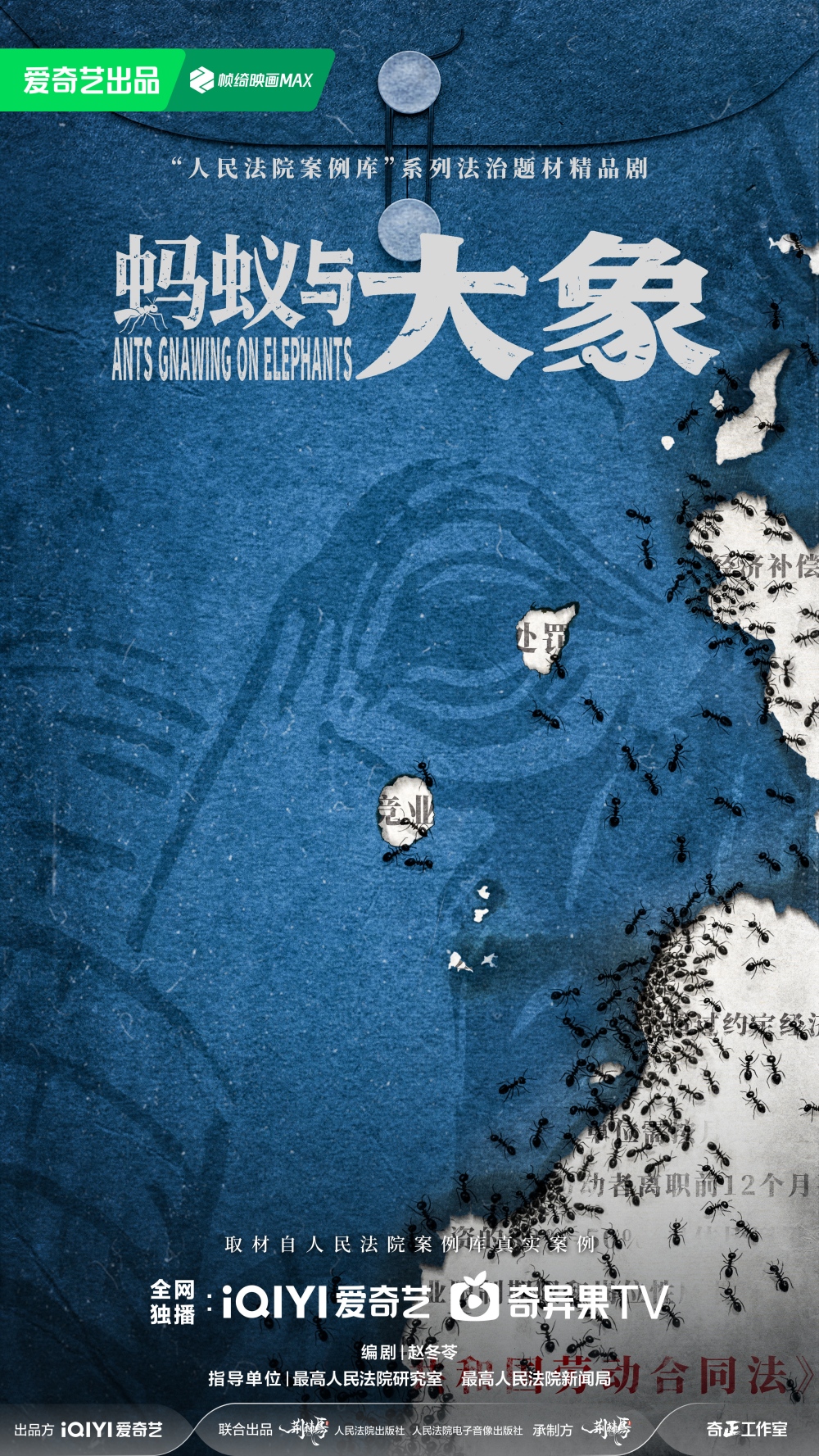 《蚂蚁与大象》由最高人民法院研究室与最高人民法院新闻局担任指导单位,人民法院出版社、人民法院电子音像出版社和荆棘鸟文化传媒(青岛)有限公司联合出品。该剧以“人民法院案例库”中的真实案例为基础,通过展现“蚂蚁对抗大象”的悬殊博弈,直指对竞业限制条款的滥用。通过互联网普通程序员王崧被迫签下竞业限制“霸王条款”,遭遇一系列不公对待后,拿起法律武器维护自身权益的故事,彰显法律守护公平正义、平衡劳资关系的核心价值,同时引发社会对劳动者权益保护与企业合规用工的深度思考。
