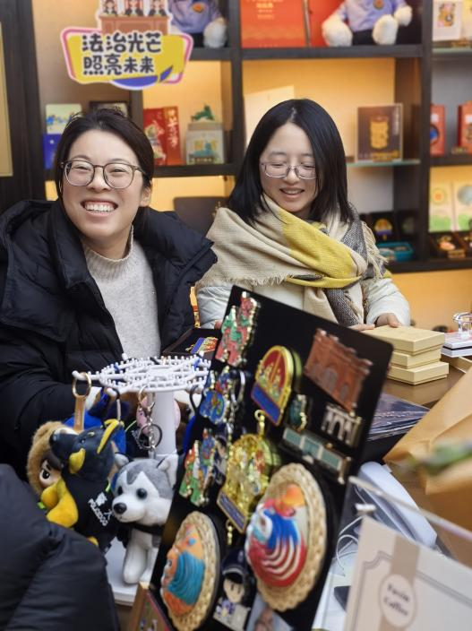 法信书店举办“宪法与生活”专题书展期间,多所院校法学专业师生专程参观交流,并在打卡点合影分享至社交媒体,带动更多居民、游客走进书店,进一步扩大了活动的社会影响力。
